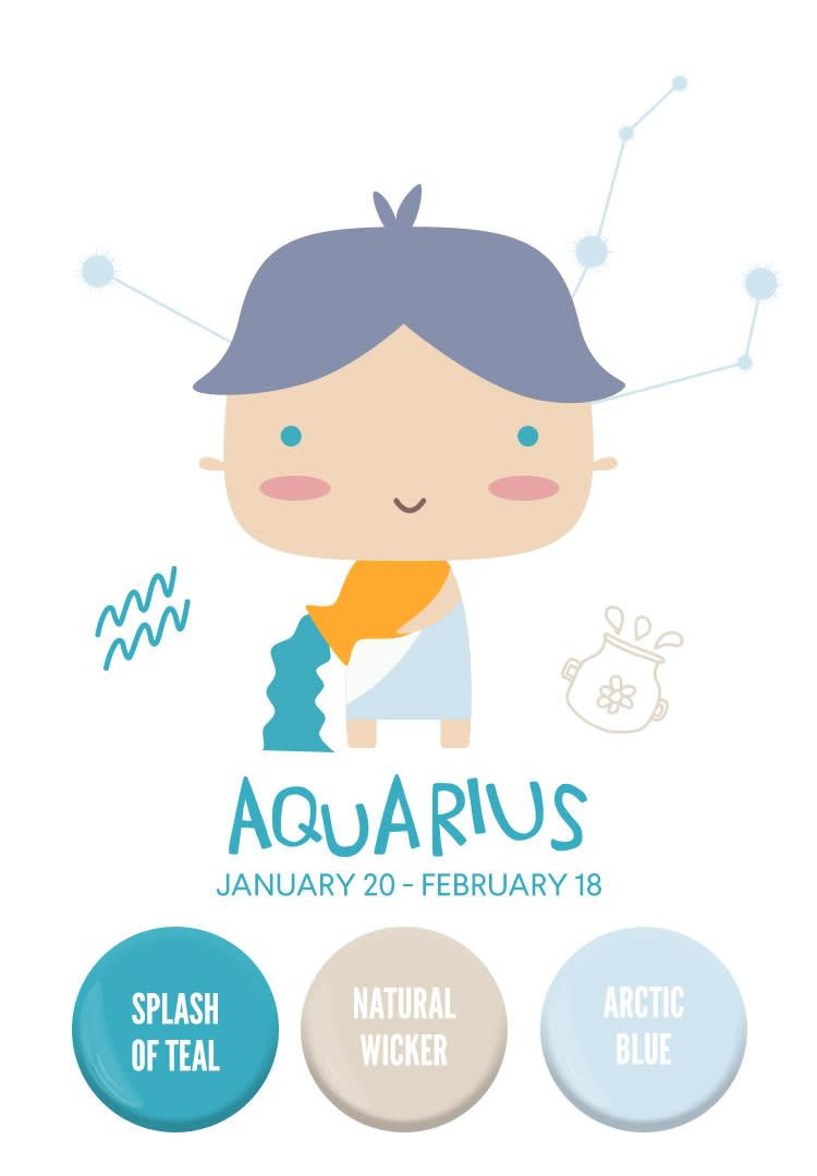 Bảo Bình lạc quan, tràn đầy năng lượng và dễ dàng thích nghi với cuộc sống. Để bổ sung cho tính cách sôi nổi của cung hoàng đạo này, hãy chọn bảng màu có tông màu xanh đậm đi kèm với các sắc thái nhẹ nhàng của màu "rám nắng" và xanh lam. Bạn thậm chí có thể sơn trần nhà màu xanh lam, sau đó sử dụng các đồ vật trang trí như máy bay, khinh khí cầu... để tạo được concept thể hiện tính tự do và phóng khoáng.