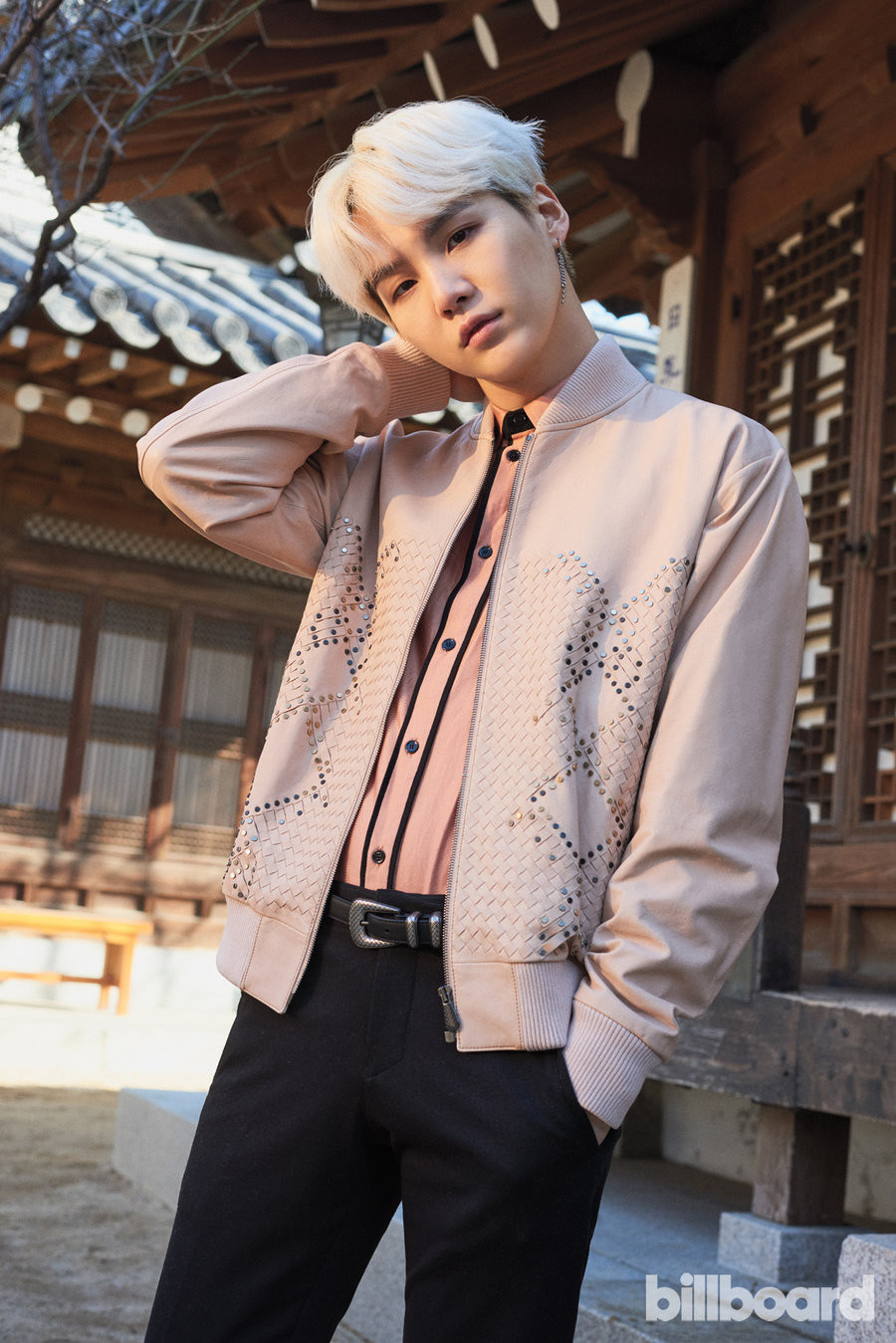 Các chàng trai BTS xem ra rất thích các thiết kế tinh xảo đến từ nhà mốt Bottega Veneta. Suga siêu ngọt ngào với chiếc áo màu hồng nhẹ nhàng, nhưng giá của nó thì chẳng nhẹ chút nào: 6000 đô-la (khoảng 138 triệu đồng).