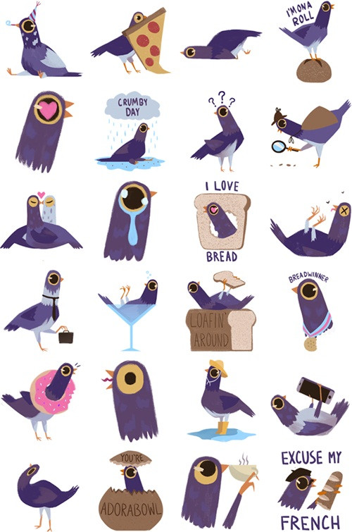 Syd Weiler cho biết cô nghĩ ra ý tưởng này khi nhìn thấy những chú chim bồ câu đang nô đùa ở hồ bơi. Ngay lập tức, Weiler sáng tạo ra bộ sticker Trash Dove với 37 hình ảnh tương ứng với 37 biểu cảm hài hước và thú vị của chú chim màu tím.
