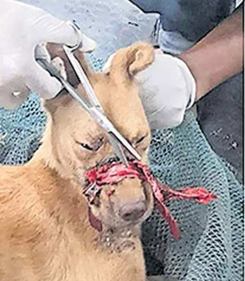 Ramachandran, thư ký của PAWS, nói với trang The News Minute: “Chúng tôi cứ tưởng chỉ có một vòng băng dính dán quanh miệng nó. Nhưng khi chúng tôi tìm được chú chó thì thấy có nhiều vòng băng dính dán chặt, đến mức băng dính hằn sâu vào thịt, lộ cả xương quanh mũi nó. Ngay khi chúng tôi gỡ được băng dính ra, nó đã uống luôn 2 lít nước”.