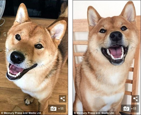 Seb (20 tháng tuổi đến từ vùng Wales của Anh) là một chú chó "điển trai" thuộc giống Shiba Inu. Chủ của Seb - Elin Gould (20 tuổi) cho biết cô lần đầu tiên phát hiện thú cưng của mình bắt đầu "cười" là vào lúc Seb mới chỉ 5 tháng tuổi.
