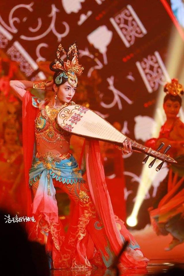 Nổi bật trong bộ váy màu đỏ, Chu Khiết Quỳnh uyển chuyển trên sân khấu. Dù phần tạo kiểu tóc được đánh giá là hơi rườm rà nhưng vẫn không "dìm" được nhan sắc lộng lẫy của cô nàng. Nhờ tiết mục này, Chu Khiết Quỳnh đã lọt Top tìm kiếm trên Weibo.