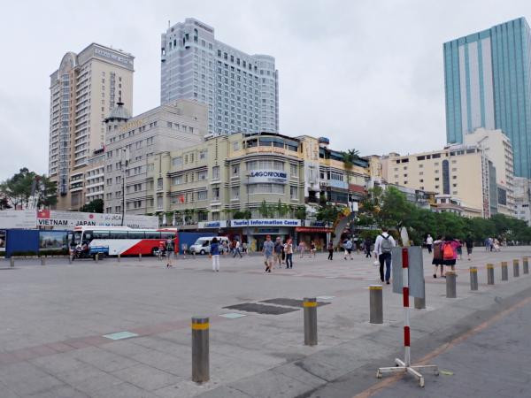 Quảng trường khu vực trung tâm thương mại Diamond Plaza. Giao thông thông thoáng, thời tiết đẹp... là những điều mọi người chia sẻ trên mạng xã hội hôm nay. (Ảnh: Thủy Tiên)