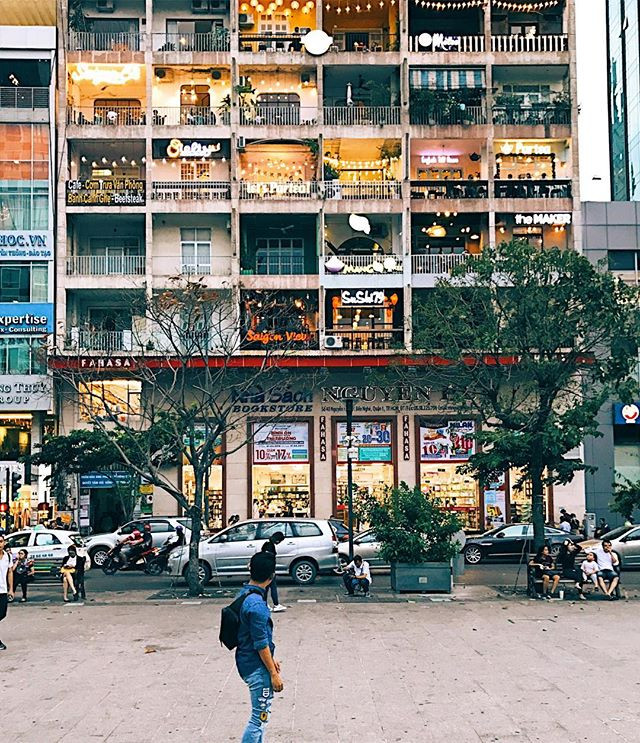 Nếu đi dạo trên phố đi bộ Nguyễn Huệ, bạn nhất định đừng quên ngước nhìn chung cư cà phê nổi tiếng. (Ảnh: HaoNguyn)