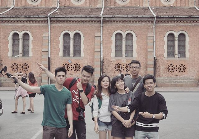 Khu vực quảng trường bên hông Nhà thờ Đức Bà thu hút nhiều nhóm bạn trẻ đi chơi ngày cuối năm. (Ảnh: Grysngray)