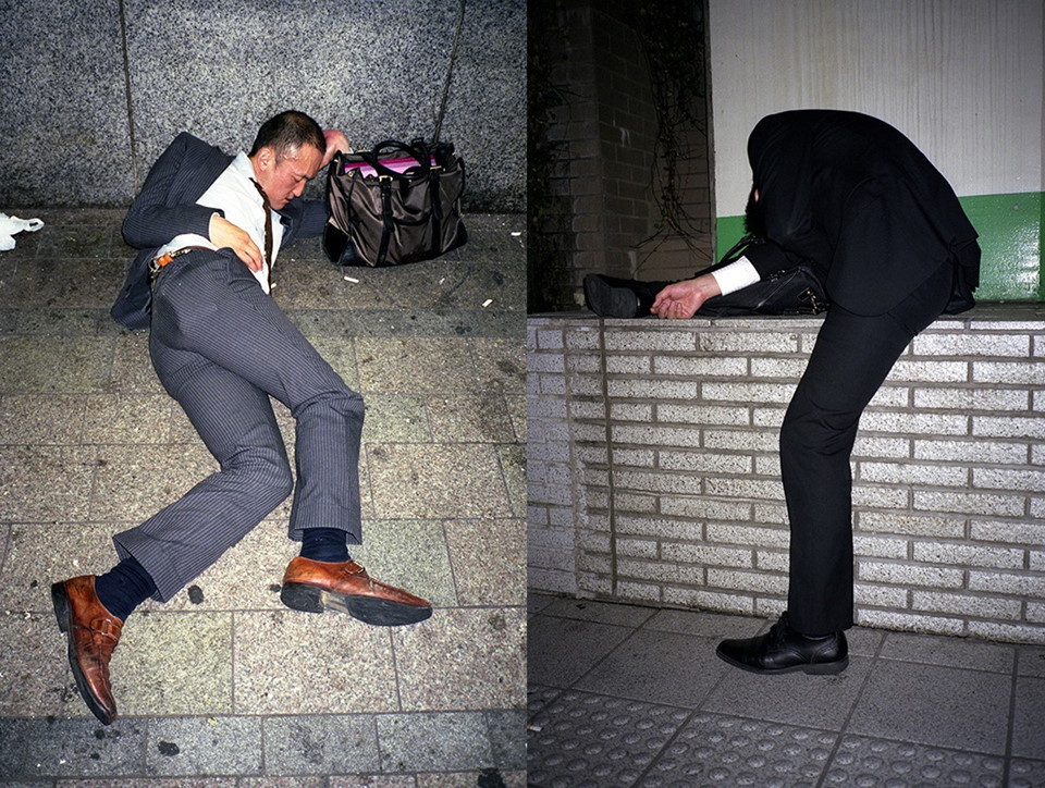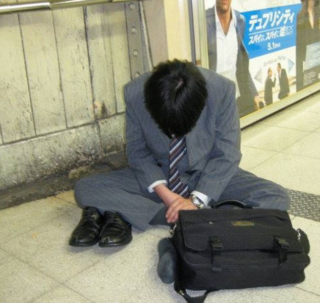 Vài năm trở lại đây, hình ảnh những nhân viên công sở Nhật Bản ngủ vạ vật trên vỉa hè, trên sàn tàu điện ngầm vào lúc tối muộn đang ngày càng trở nên phổ biến. Hình ảnh những người đàn ông khoác trên mình bộ vest lịch lãm, nằm ngủ "không biết trời trăng" nơi công cộng đã phản ánh văn hóa "làm hết sức, chơi hết mình" của những người Nhật Bản.