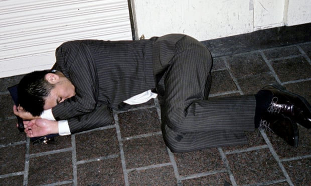 Tuy nhiên, dưới góc nhìn của một người nước ngoài, anh Jaszczuk lại cho rằng hình ảnh những nhân viên công sở ngủ vất vưởng ngoài đường phản ánh tình trạng người lao động Nhật Bản đang bị khai thác tới mức kiệt quệ. Anh mô tả một số người trông giống như nạn nhân của một vụ ám sát, và "thủ phạm" chính là lượng công việc nhiều tới mức quá tải tại các công ty.