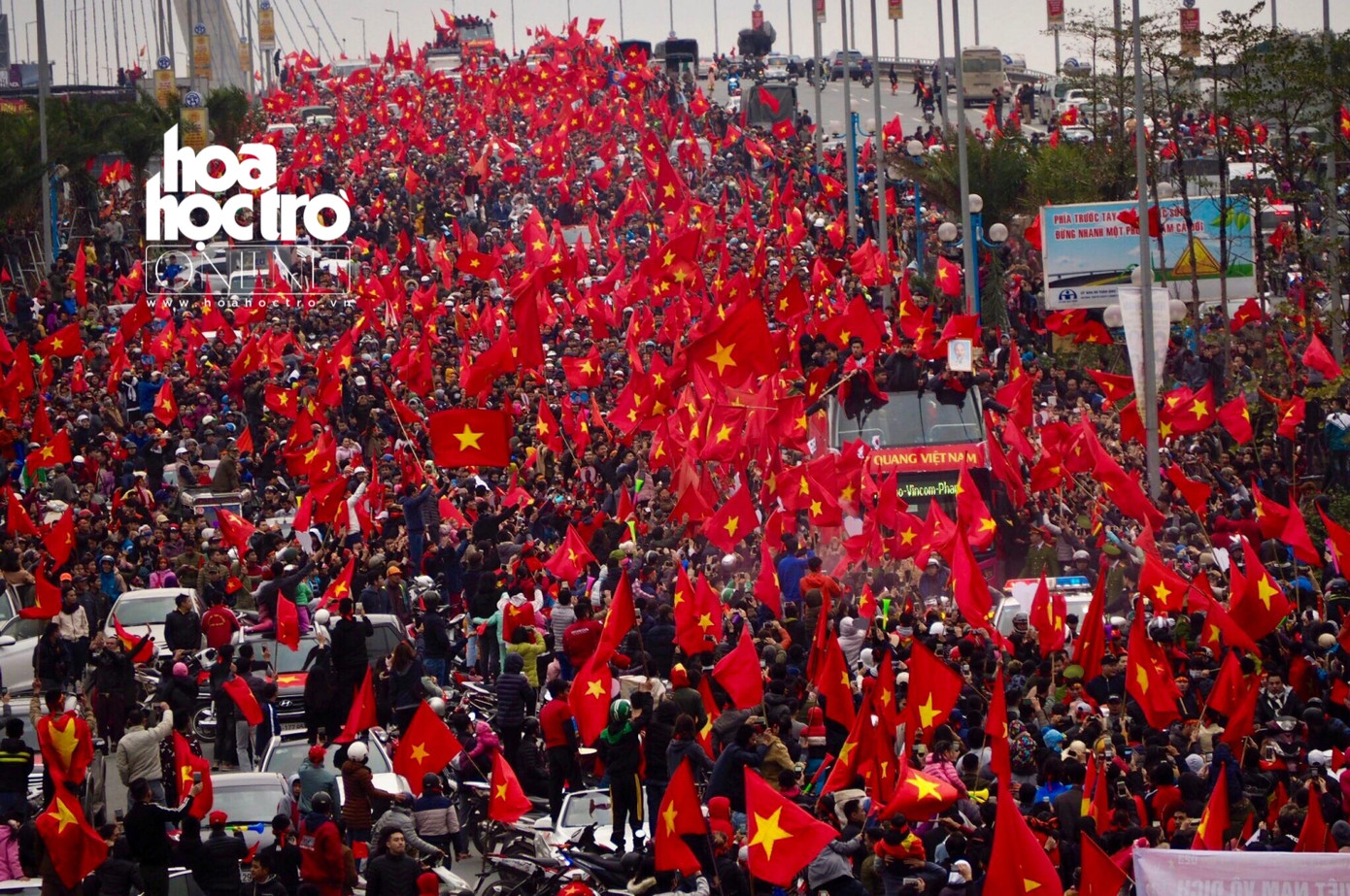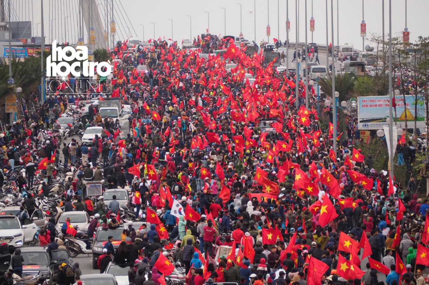 Hàng trăm ngàn người có mặt tại khu vực cầu Nhật Tân (Hà Nội) để đón các chàng trai U23 Việt Nam trở về ngày 28/1. (Ảnh: Kiên Trần - PVFCco)