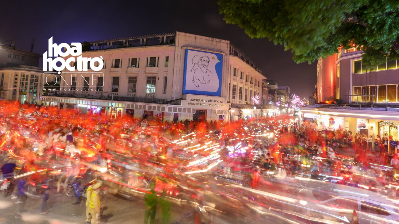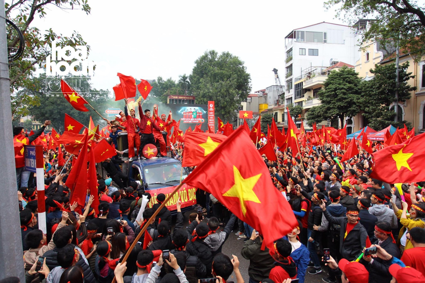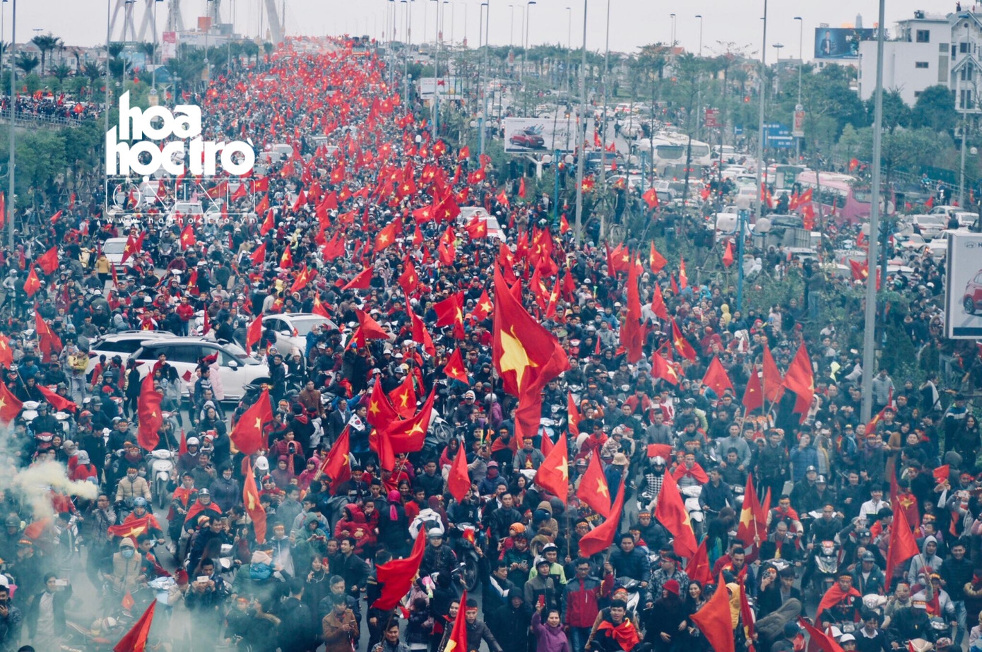 Hàng trăm ngàn người dân tại Hà Nội đã đổ xuống đường ăn mừng sau trận bán kết U23 Việt Nam với U23 Qatar. (Ảnh: Min Soon)