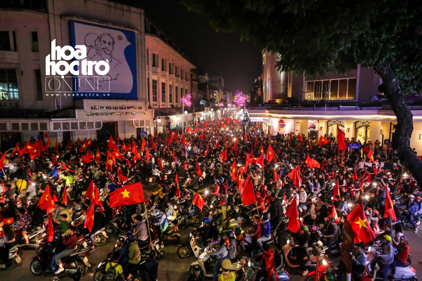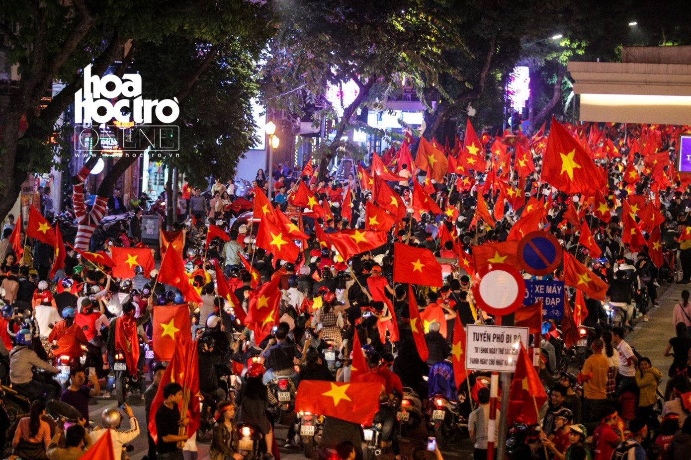 Sau trận chung kết, dù không giành được cúp vô địch nhưng hàng ngàn người vẫn đổ ra đường để ăn mừng, đủ để hiểu rằng các tuyển thủ U23 Việt Nam đã giành chức vô địch trong trái tim hàng triệu người con đất Việt. (Ảnh: Min Soon)