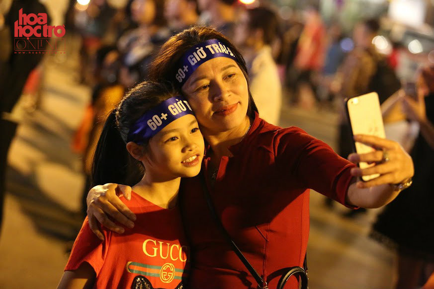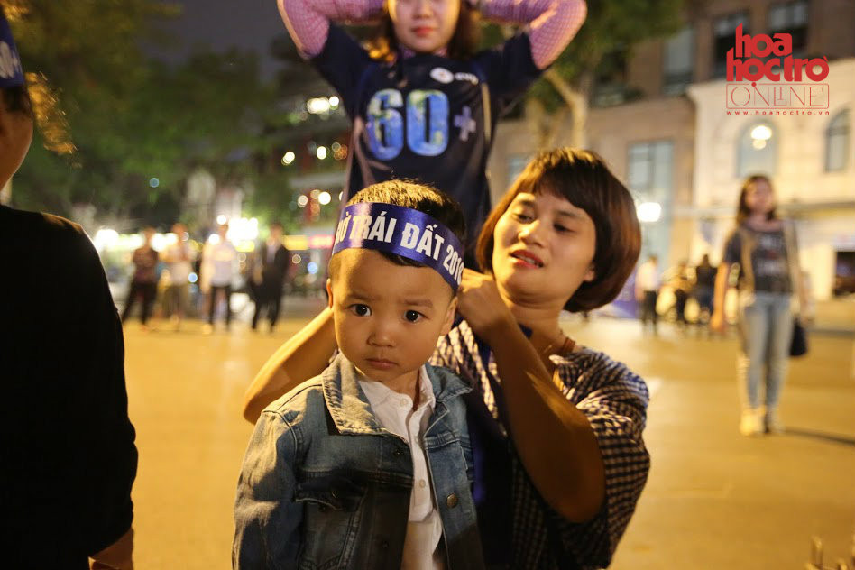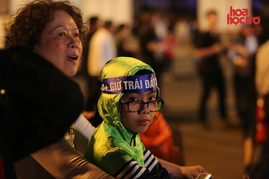 Các em nhỏ cũng theo chân bố mẹ, anh chị để xuống đường hưởng ứng Giờ Trái Đất.