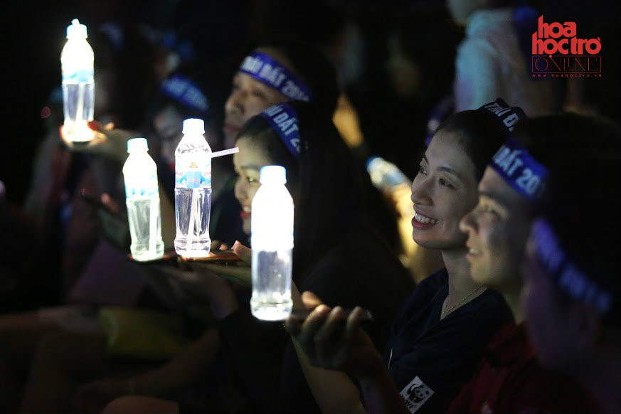 Các bạn trẻ sử dụng chai nước để khuếch đại ánh sáng từ đèn pin điện thoại, lung linh quá phải không nào!