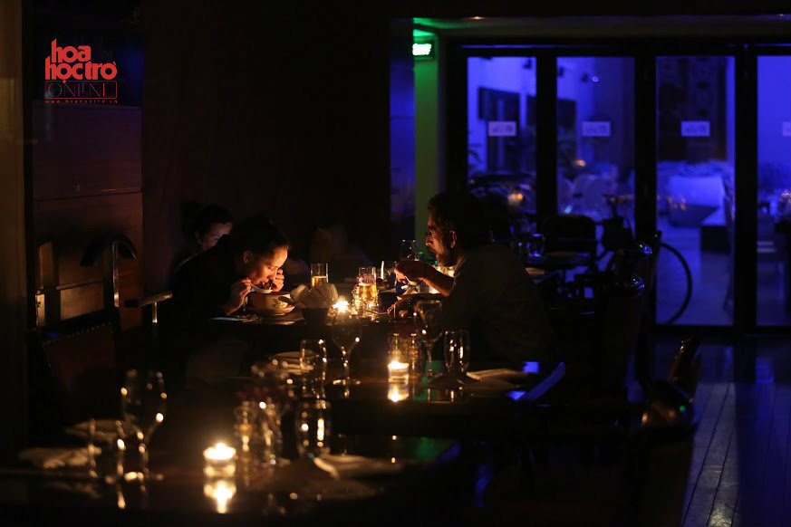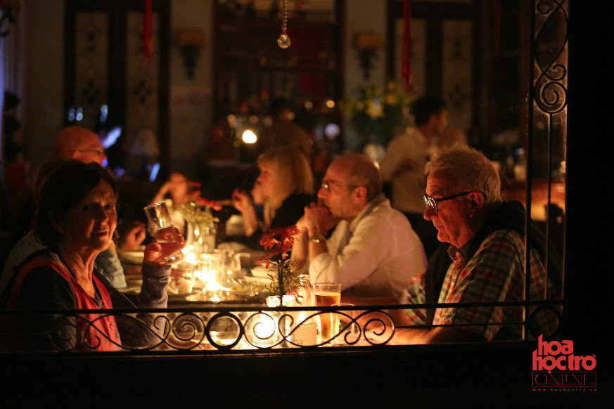 Quán xá cũng trở nên đẹp yên ả, lãng mạn hơn dưới ánh nến vàng.