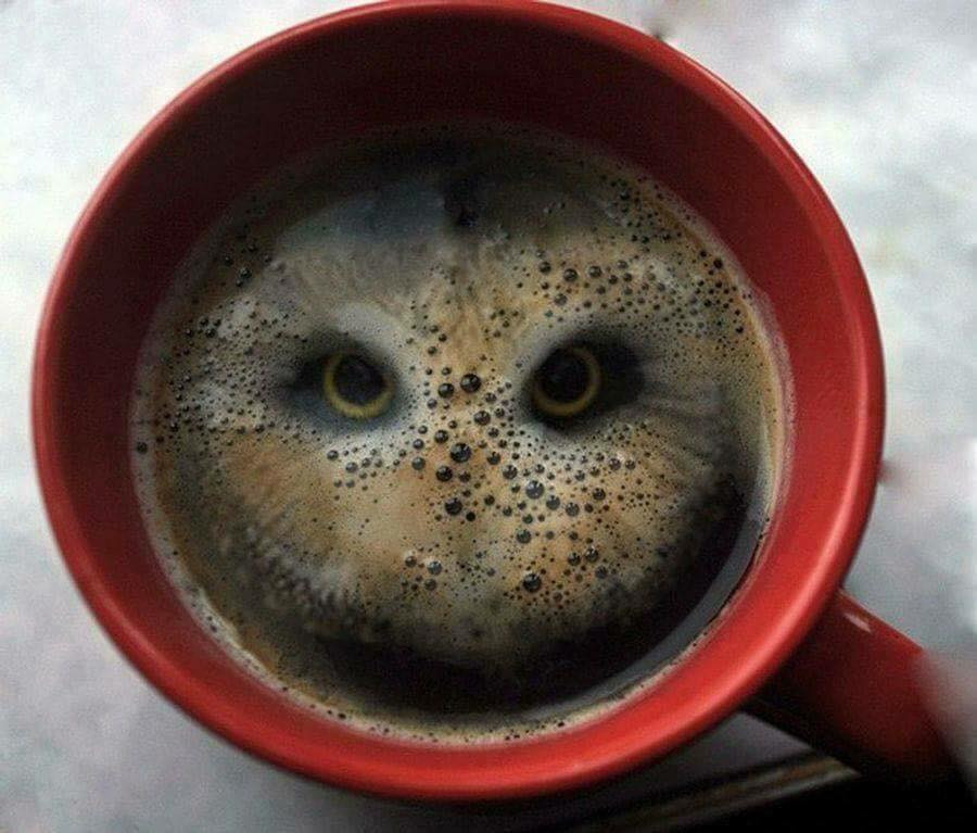 Cẩn thận không bị cú mèo mổ vào miệng khi uông cốc cà phê này nhé!
