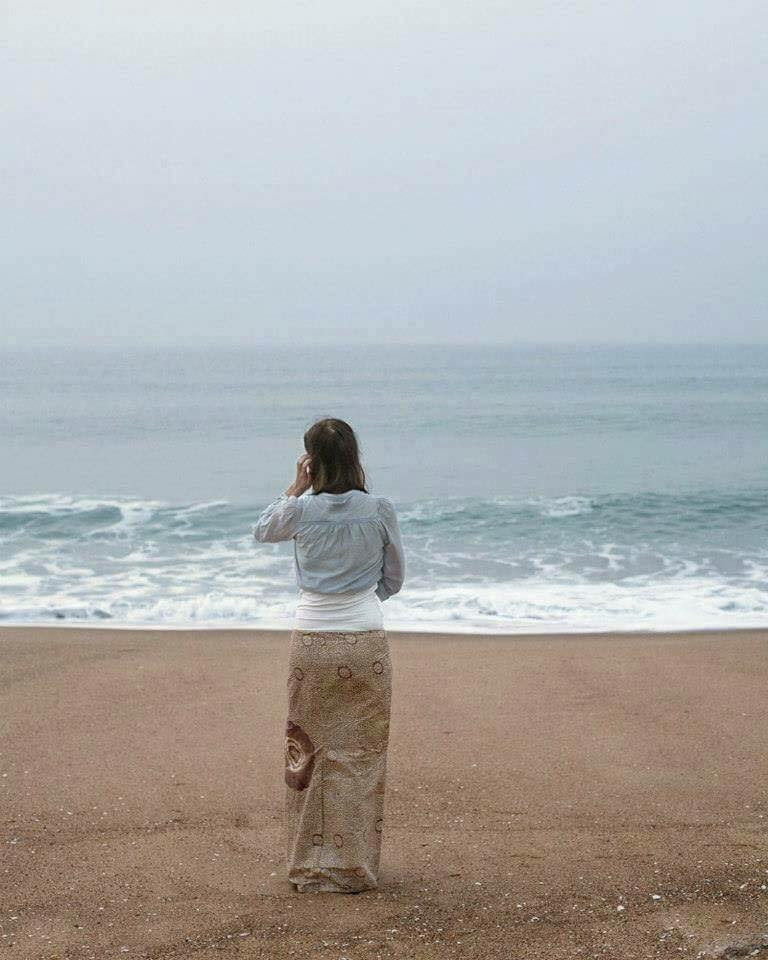 Một bức ảnh hài hòa và bình yên đến lạ, áo em là sóng biển, để chiếc váy em mang là bãi cát dài.