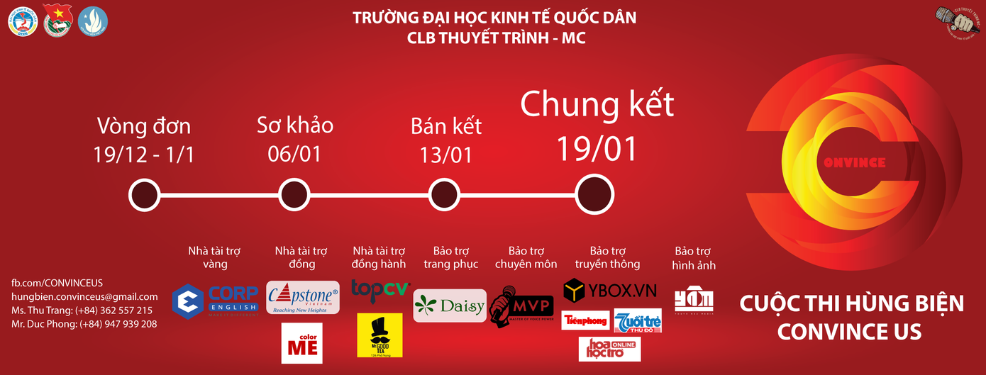 Trải qua hai tháng tranh tài quyết liệt, Convince Us, cuộc thi Hùng biện do CLB Thuyết Trình – MC trường Đại học Kinh tế Quốc dân đăng cai tổ chức đã chính thức khép lại với chiến thắng thuộc về thí sinh Nguyễn Long Hà đến từ trường Đại học Kinh tế Quốc dân.