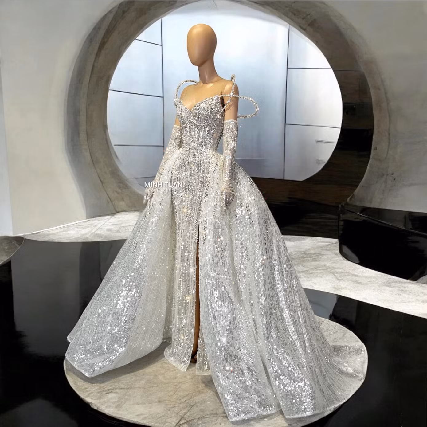 Đêm Chung kết Miss Grand International 2024 cũng chính là thời khắc Hoa hậu Luciana Fuster thực hiện final walk trước khi trao lại vương miện cho người kế nhiệm. Cô được khen lộng lẫy như công chúa trong một bộ đầm lấp lánh của NTK Nguyễn Minh Tuấn thực hiện.