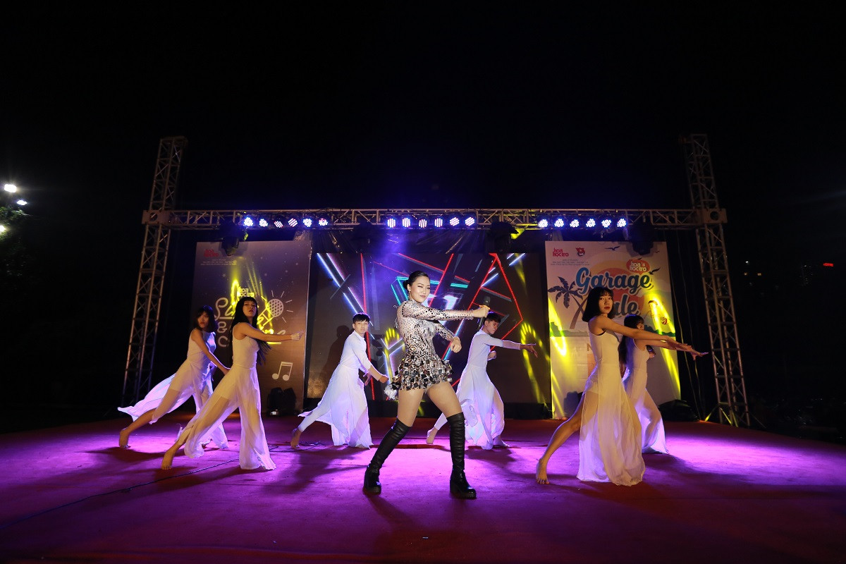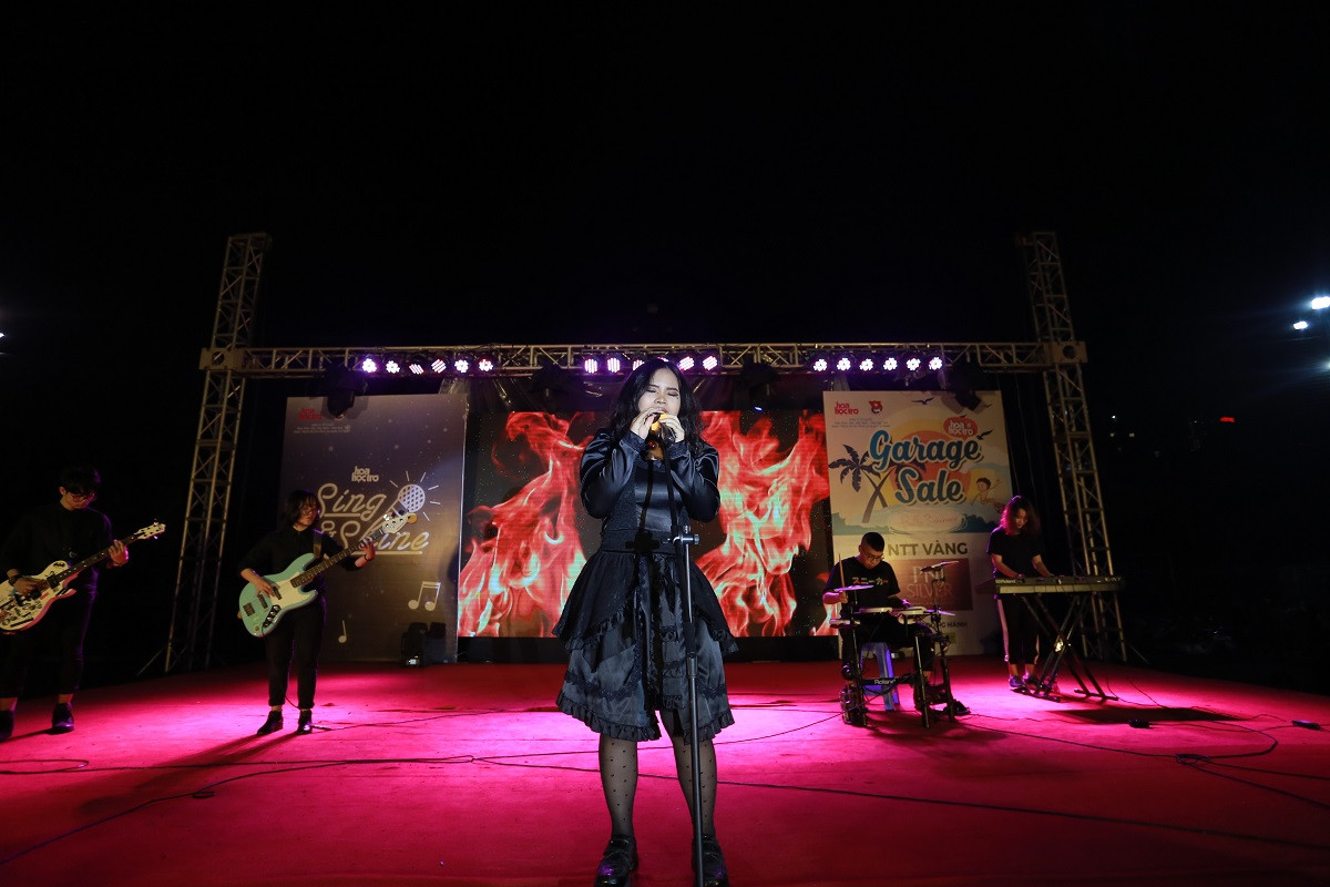 Hoàng Thu Vân đốt cháy sân khấu khi phối hợp cùng ban nhạc trong bài hát Marry the night.