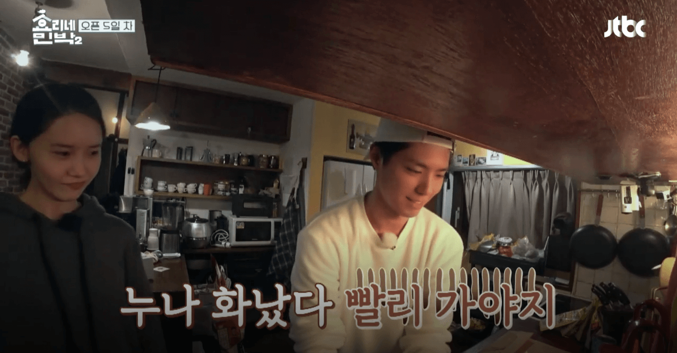 Chuyện là khi Park Bo Gum vừa mới tới phụ giúp trong khu homestay của hai vợ chồng Lee Hyori thì ông chủ Lee Sang Soon đi công tác, bà chủ Lee Hyori bị mệt cần nằm nghỉ, nên chỉ còn hai trợ lý Yoona và Park Bo Gum tự xử lý mọi việc.