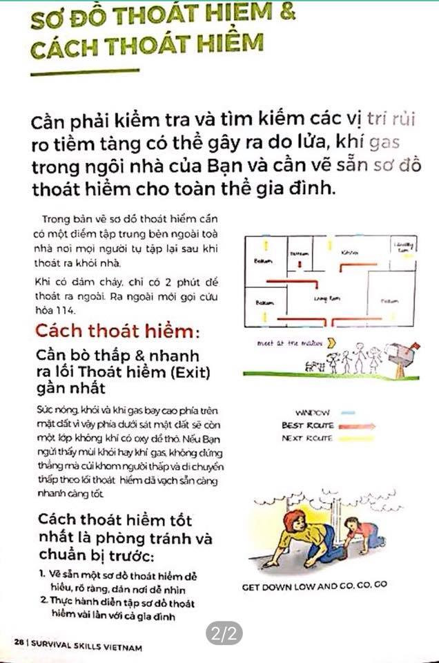 Hình ảnh hướng dẫn chi tiết cách thoát hiểm kèm hỉnh ảnh sinh động trong sổ tay sơ cấp cứu và thoát hiểm do ông Tony cùng nhóm TNV thực hiện.