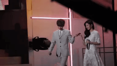 Lễ trao giải âm nhạc cuối năm 2017 của đài KBS đã tạo ra khoảnh khắc cực đáng nhớ gỡ ba MC là Chanyeol (EXO), Irene (Red Velvet) và Jin (BTS). Jin nhất quyết phải đứng thật xa Irene, ngay cả khi được đề nghị là đứng gần Irene để chụp ảnh cho đẹp, thì Jin cứ tiến gần được một bước lại lùi xa hai bước.