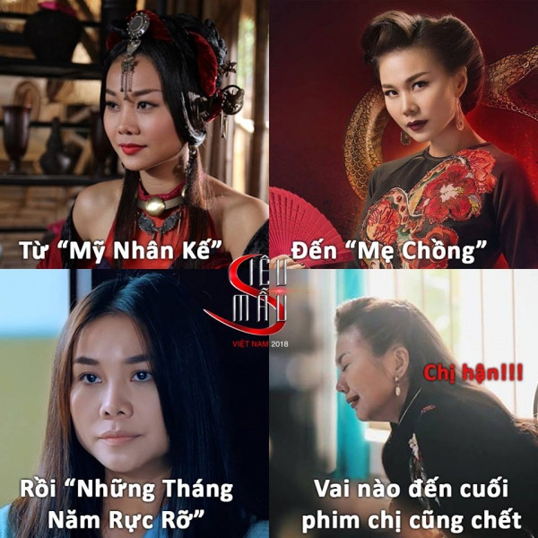 Tuy nhiên, khán giả tinh ý nhận ra một điều, dẫu hóa thân thành mẹ chồng thâm độc, sâu cay trong Mẹ chồng, nàng Kiều Thị quyến rũ ở Mỹ nhân kế, hay chị đại nhóm nữ quái Ngựa Hoang với Tháng năm rực rỡ, thì Thanh Hằng vẫn là nhân vật bị… ép chết cuối phim. Số phận “nhọ nhem” này của người đẹp khiến người xem không khỏi vừa thấy tội, vừa… buồn cười.