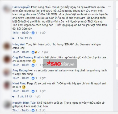 Chiều ngày 13/11, bộ phim Cô Ba Sài Gòn bất ngờ bị quay livestream lén. Chỉ trong vòng chưa đầy 30 phút, số lượng người tham gia vào livestream lên đến hơn 5.700. Sự việc ngay lập tức được ngăn chặn, đồng thời ê-kíp sản xuất phim đã tìm ra được kẻ tình nghi thực hiện hành vi này và giao cho công an xử lý.