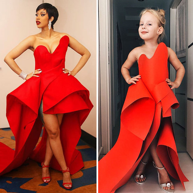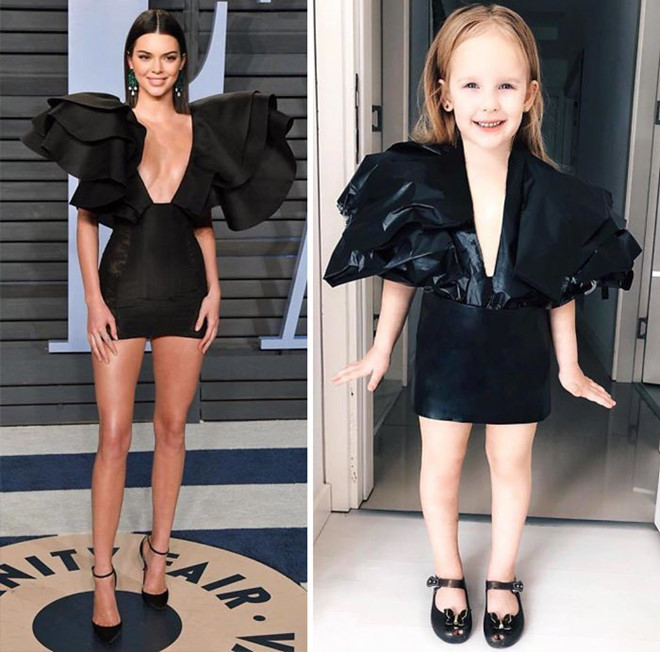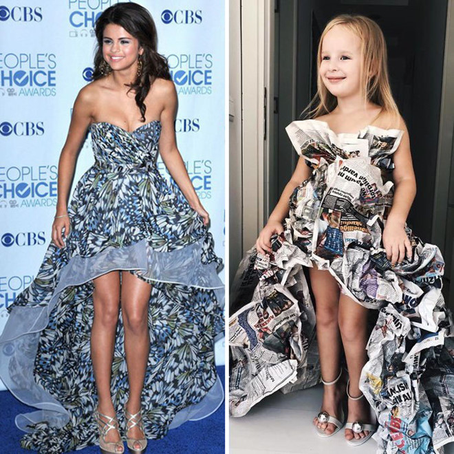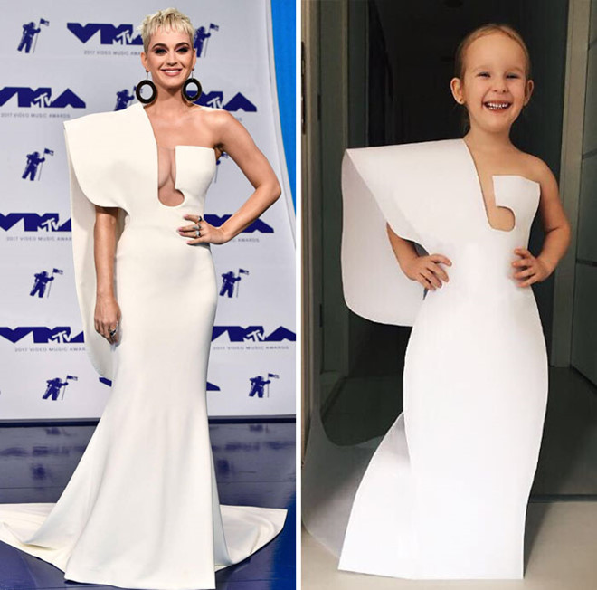 Dù mới 5 tuổi, Stefani đã tỏ ra hứng thú với thời trang, tạo dáng và thể hiện đúng tinh thần bộ trang phục. "Nhìn bé thật dễ thương, nhí nhảnh trong bộ váy giống người nổi tiếng. Bé không mang lại cảm giác gượng ép hay bị ép buộc chút nào", Katy để lại bình luận.