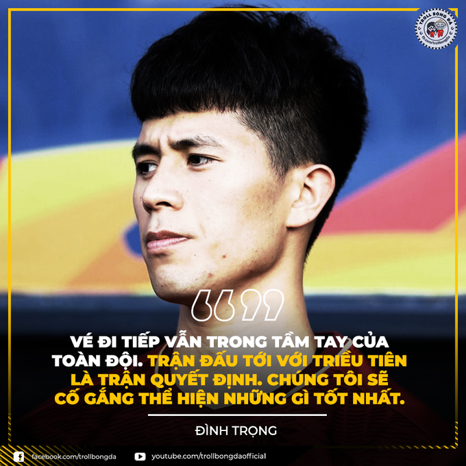 Lượt trận cuối bảng D diễn ra đồng thời hai trận vào 20h15 ngày 16/1, Việt Nam gặp Triều Tiên trên sân Rajamangala (Bangkok), còn Jordan đối đầu UAE tại Buriram. Việt Nam buộc phải thắng cách biệt Triều Tiên kèm điều kiện phụ thuộc từ hai đội còn lại để có vé vào tứ kết. Đây là bài toán không dễ đối với đoàn quân ông Park Hang-seo. Trước giờ G, CĐV chế ảnh cổ vũ tinh thần các chàng trai Việt.
