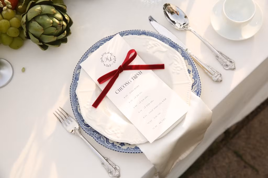 | Không gian, thực đơn của buổi lễ được chăm chút tỉ mỉ. |
