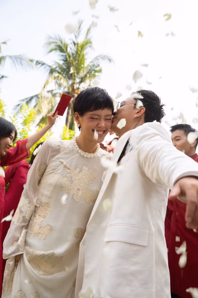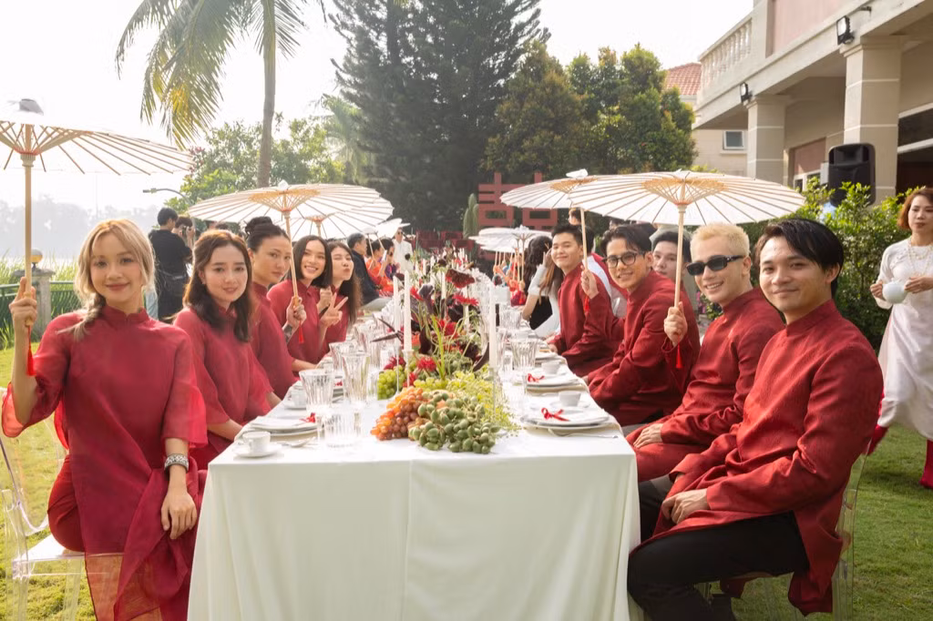 Dàn bê tráp của cặp đôi Khánh Linh - Minh Kông là những KOL/ Influencer đình đám như: Dino Vũ, Kendall Nguyễn, Naomi, Phạm Diệu Linh… Tất cả đều diện trang phục ton-sur-ton là những chiếc áo dài cách tân với màu sắc tươi sáng, tạo nên không khí ấm cúng, trẻ trung cho buổi lễ. Về thông tin của hôn lễ chính thức, Minh Kông và Khánh Linh vẫn muốn giữ bí mật và hứa sẽ tiết lộ khi mọi thứ được chuẩn bị một cách kĩ càng, chỉn chu nhất.