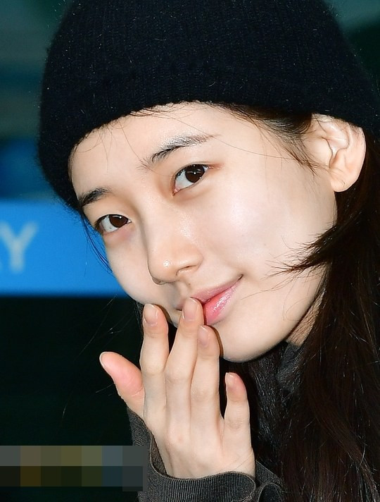 Chỉ Suzy mới đủ tự tin để mặt mộc hoàn toàn xuất hiện ngoài sân bay, cũng chẳng cần đeo khẩu trang hay kính đen che chắn. Cô nàng hoàn toàn tự tin khoe khuôn mặt không chút mỹ phẩm trước ống kính của hàng chục phóng viên.