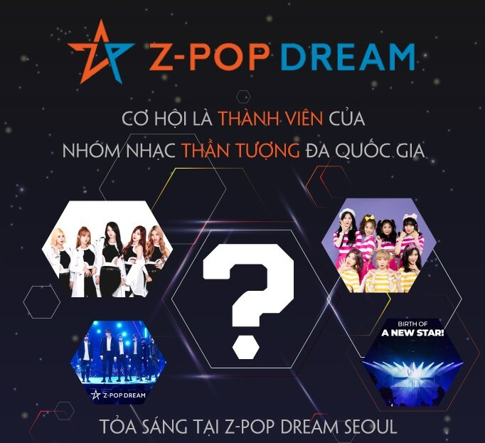 Ngay bây giờ, cơ hội hấp dẫn giúp bạn trẻ trở thành ngôi sao này đã chính thức “đổ bộ” vào Việt Nam trong khuôn khổ dự án Z-POP Dream, được sáng lập bởi các chuyên gia đã tạo nên tên tuổi cho hàng loạt thần tượng nổi tiếng xuyên biên giới kể trên.