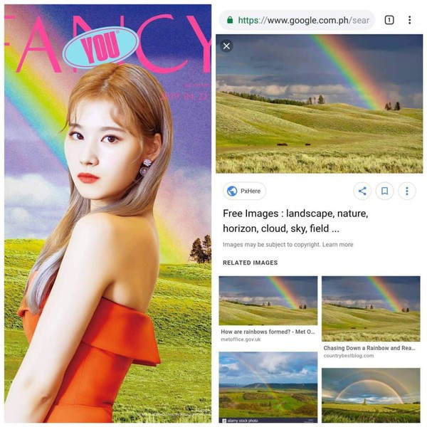 Các họa sĩ đã lọc hình của TWICE ra và ghép vào các phông nền có sẵn trên mạng, tạo ra những hình ảnh lòe loẹt lỗi mốt vô cùng. Thậm chí họ cắt ghép hình ảnh qua loa đến nỗi Mina còn bị mất luôn bàn tay trái. Đến các công ty giải trí nhỏ cũng chăm chút cho hình quảng bá rất chuyên nghiệp, chẳng ai làm lấy lệ như JYP cả.
