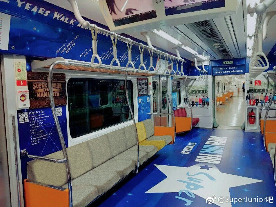 Sắc xanh Sapphire và hình ảnh các thành viên trong album mới của Super Junior đã được các “bà chị Đại lục” nhà không có gì ngoài điều kiện phủ kín toa tàu.