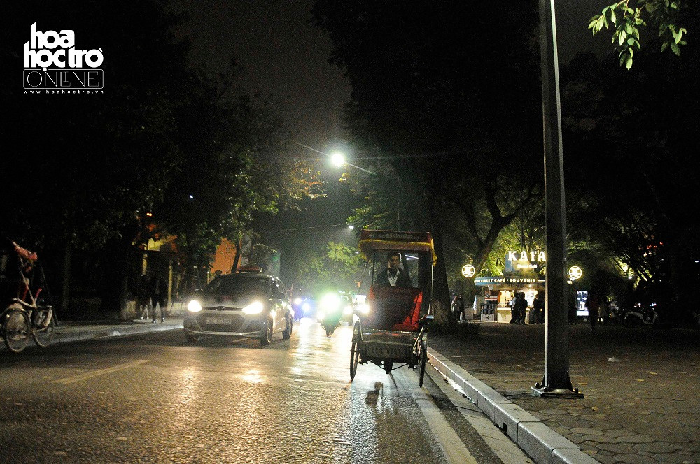 Đường Lê Thái Tổ, quận Hoàn Kiếm lúc này không còn chật chội đông đúc như buổi xế chiều, các dòng phương tiện di chuyển hài hòa hơn nhưng cũng không kém phần nhộn nhịp.