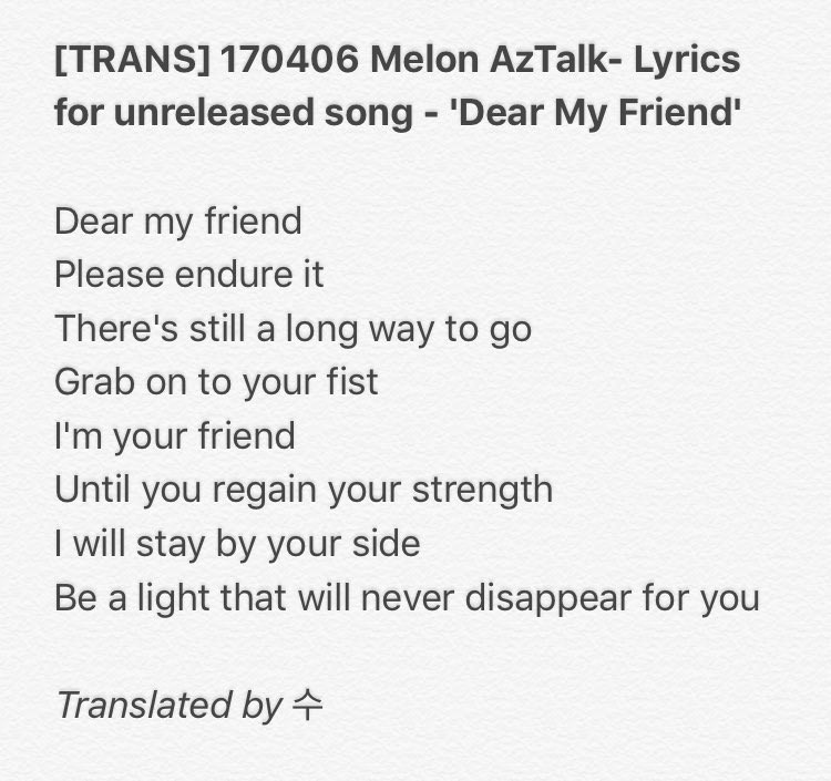 IU và Jiyeon được các fan biết đến là một đôi bạn thân thiết sau khi cả hai cùng tham gia chương trình thực tế Heroes. Hai cô nàng cùng sinh năm 93 thường xuyên thể hiện tình cảm thân mật dành cho nhau trên mạng xã hội cũng như các chương trình truyền hình. Vì vậy, khi bài hát Dear My Friend được IU chính thức tiết lộ đã khiến các fan càng thêm cảm động trước tình bạn của các thần tượng. Mong rằng IU và Jiyeon sẽ luôn tỏa sáng trên con đường sự nghiệp của mình sau những scandal không mong muốn của cả hai.