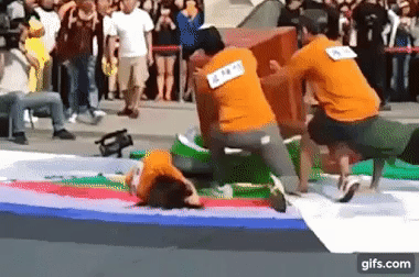 Chẳng ngờ cô bị ngã khỏi bục nhảy, rơi xuống tấm nệm trải phía dưới. Nếu chỉ có thế thì Yubin sẽ an toàn. Nhưng chẳng ngờ bục nhày lại đổ theo, và đổ sụp xuống người Yubin. Rất may là các người chơi khác đã kịp thời phát hiện ra nguy hiểm, lao tới giữ chiếc bục lại nên Yubin không phải hứng chịu toàn bộ sức nặng của chiếc bục gỗ.