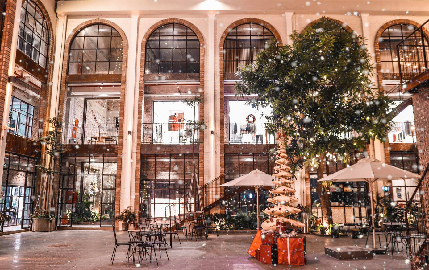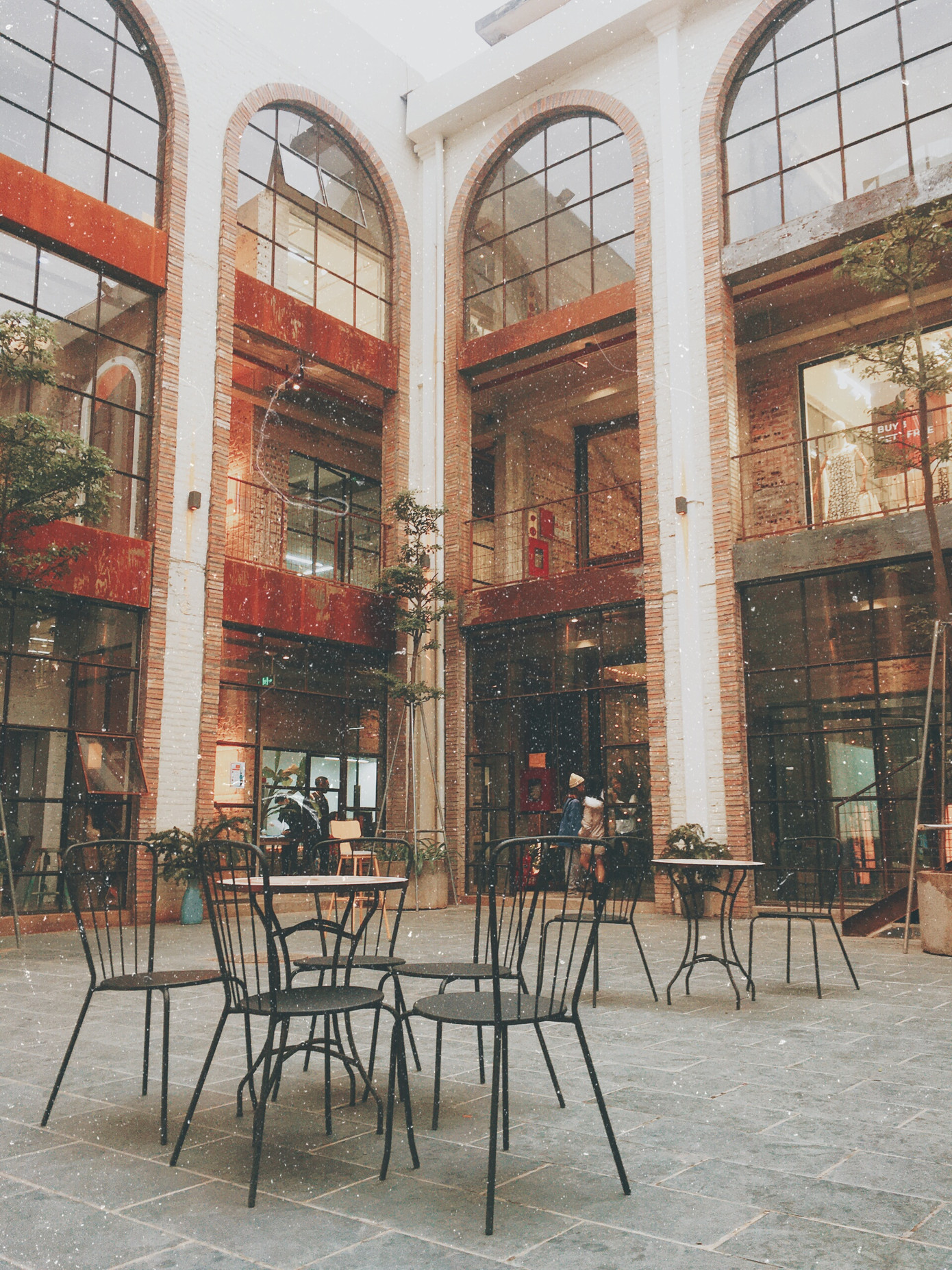 Khu tổ hợp được thiết kế, xây dựng lại dựa trên nền một nhà máy cũ nên vẫn còn vẹn nguyên những bức tường gạch đỏ, bậc thang kim loại có phần bụi bặm một nét cổ xưa.