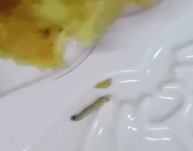 Chiều cùng ngày, khi vừa đi học về, bé P. cắt chiếc bánh ra xem thì thấy mấy con dòi trong bánh. Do tò mò nên bé lấy điện thoại chụp ảnh rồi đăng lên tài khoản Facebook của mẹ.