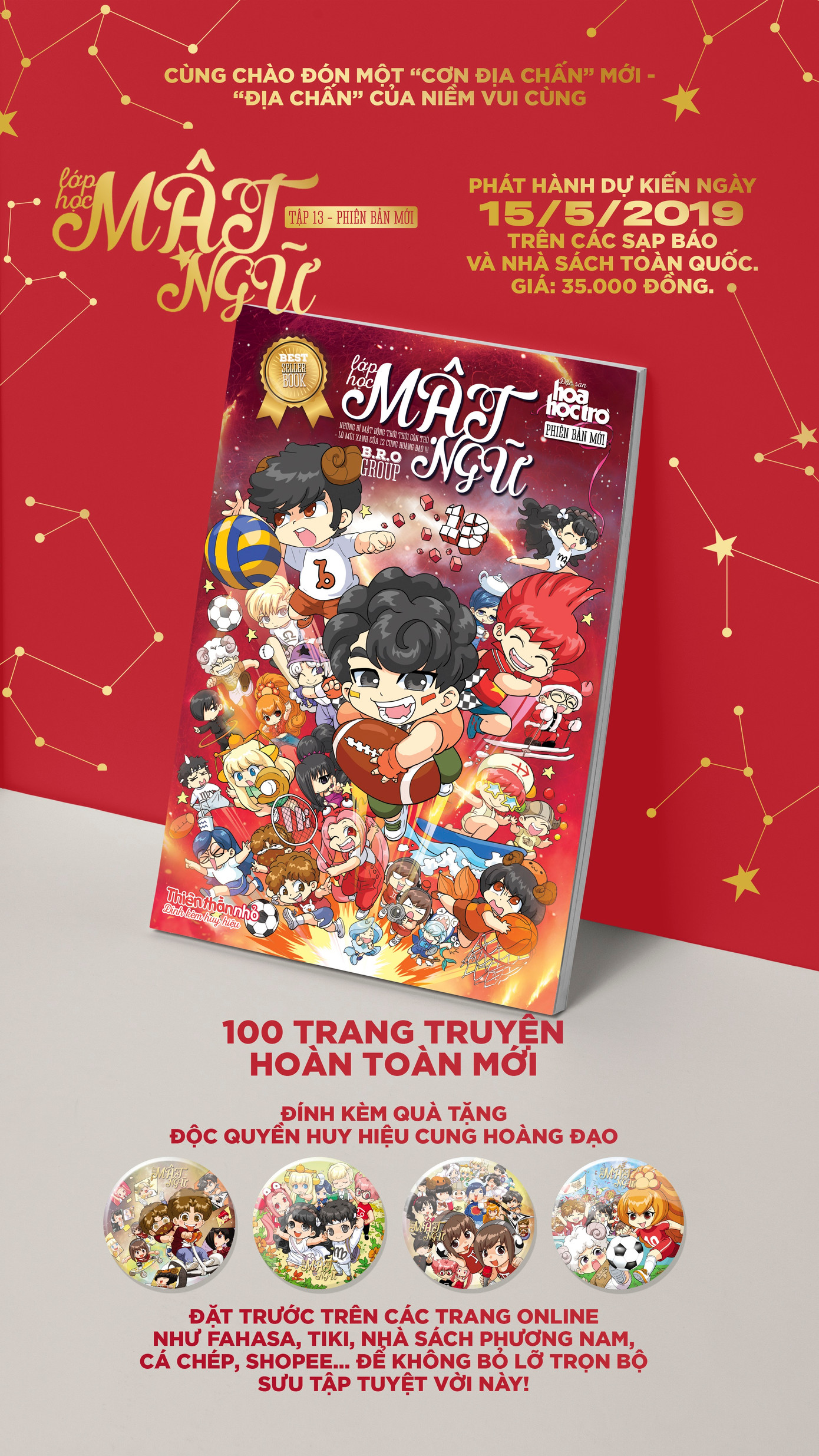Lớp Học Mật Ngữ tập 13 này không chỉ mới keng xà beng từng trang truyện nóng hổi chưa bao giờ đăng ở đâu, mà còn đem đến cho bạn quà tặng cực kỳ hấp dẫn là chiếc huy hiệu cung hoàng đạo đáng yêu siêu bờ bến trị giá 15.000 đồng.
