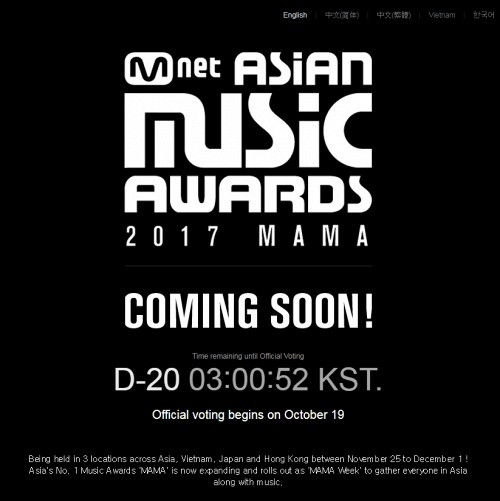 Mới đây, trang web bình chọn trực tuyến của MAMA 2017 đã chính thức ấn định thời điểm mở cửa: 19/10. Trang chủ MAMA xuất hiện đồng hồ đếm ngược trên màn hình. Đồng thời, danh sách những người thắng cuộc các năm trước cũng được MAMA vinh danh trong phần "bảo tàng".