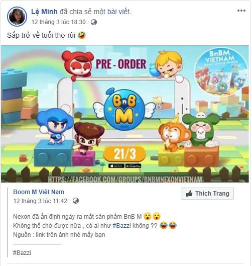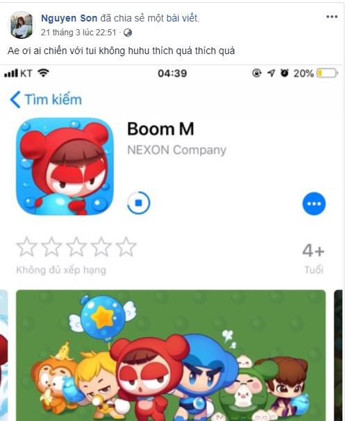 Khi biết tin Boom M sắp chính thức ra mắt, nhiều bạn trẻ háo hức vào app trên điện thoại đăng kí tải về. “Sắp trở về tuổi thơ rồi”, “Anh em ai chiến với tôi không thích quá thích quá”… đó là chia sẻ của các game thủ trên Facebook cá nhân, điều này cho thấy Boom Online vẫn luôn là huyền thoại trong lòng người chơi.