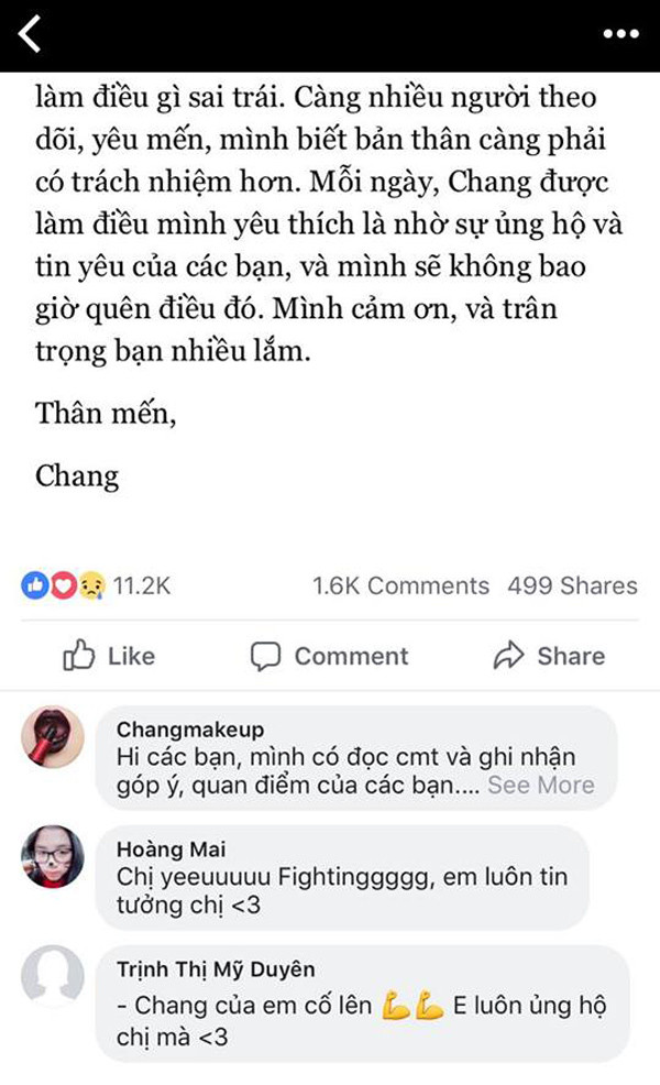 Nguyên văn chia sẻ của Changmakeup trên trang cá nhân: