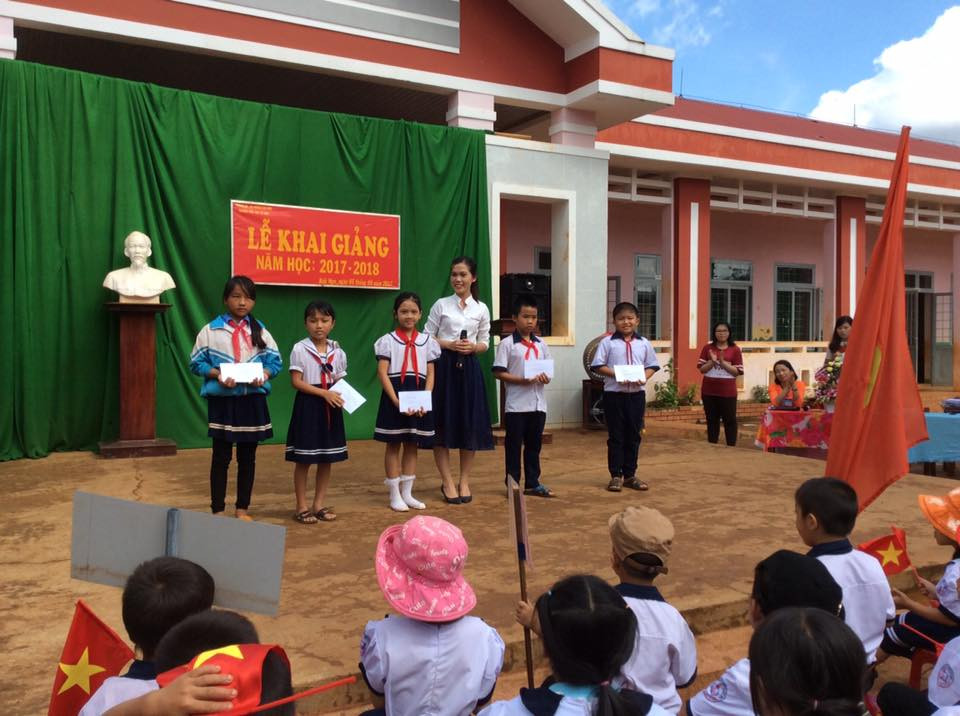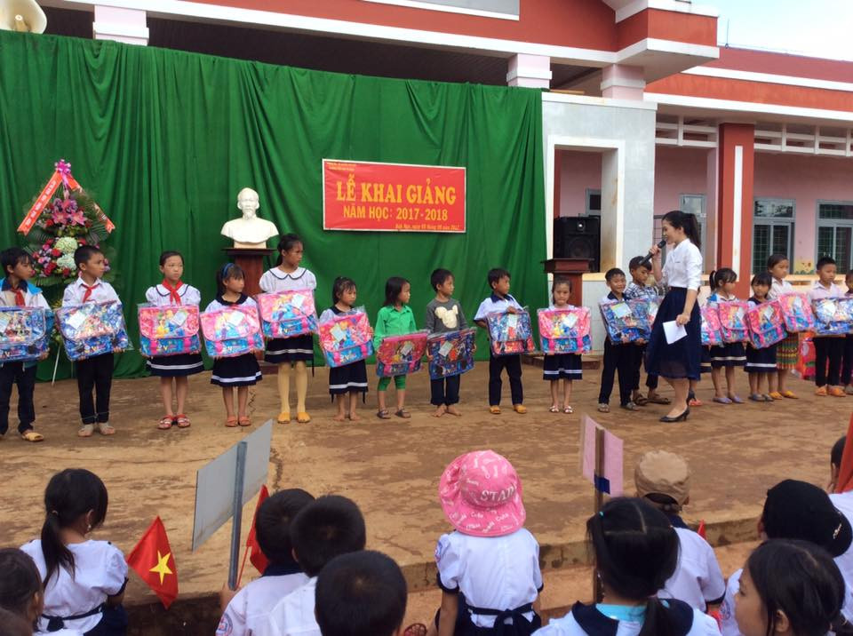 Các bạn còn trao những phần quà cho các em học sinh.