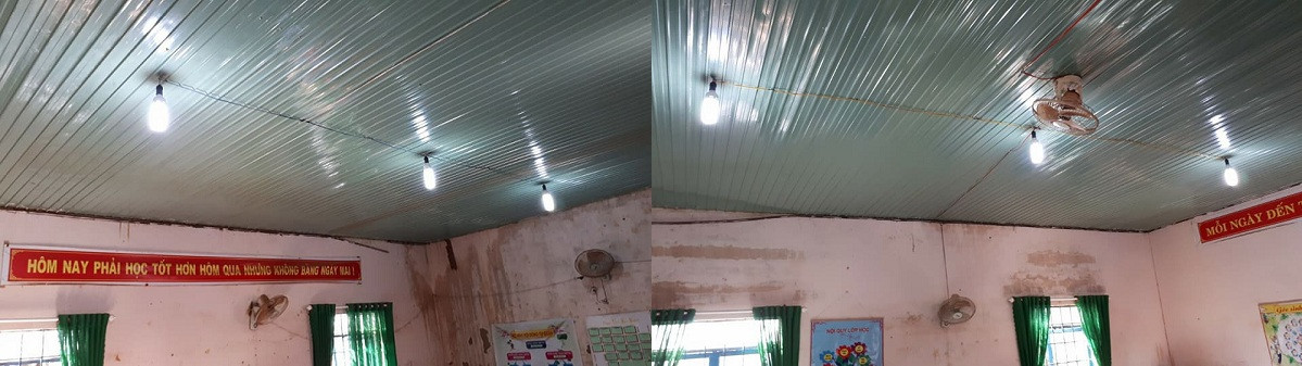 Các lớp học được sơn mới, bổ sung hệ thống đèn điện nhằm cung cấp ánh sáng tốt hơn cho các em học tập.