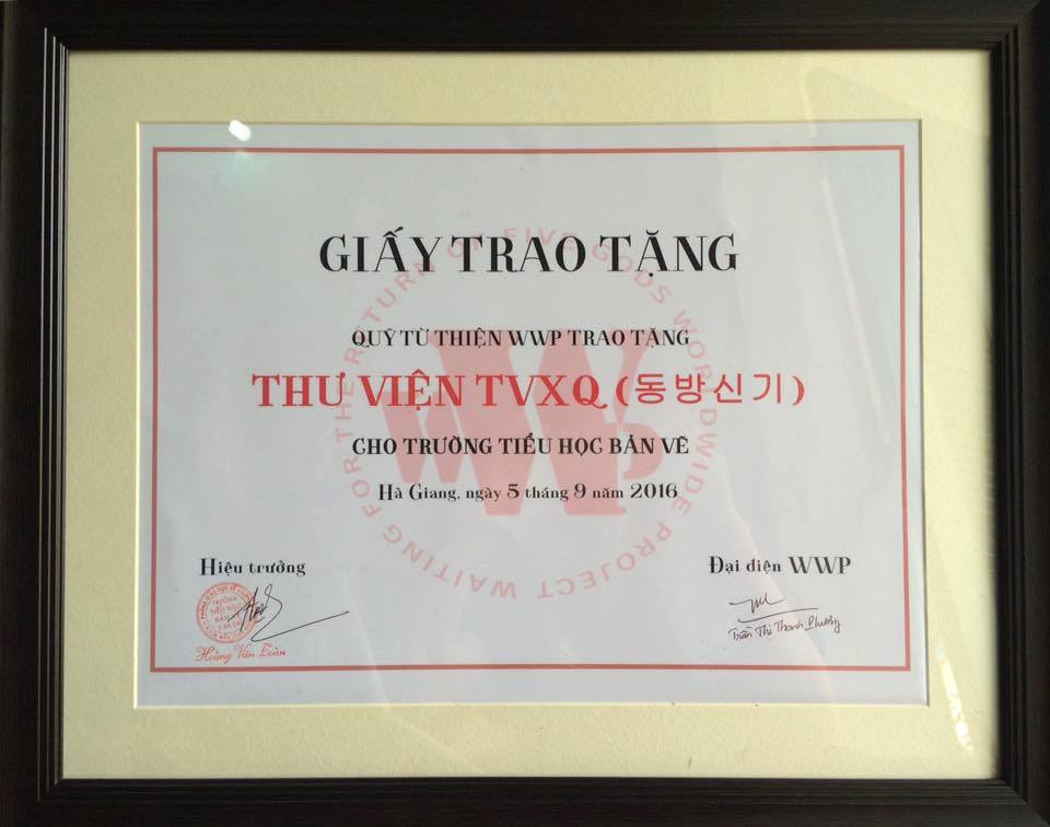 WWP đã trích 5 triệu đồng còn dư từ quỹ đóng góp của V-Cass để duy tu, tân trang Thư viện TVXQ đầu tiên, đồng thời sẽ gửi sách lên cho các em, vì sau một năm, số sách hiện có trong thư viện đã được các em đọc đến sờn cả gáy rồi. Trường dân tộc nội trú ở Hà Giang cũng được WWP ủng hộ 5 triệu đồng.