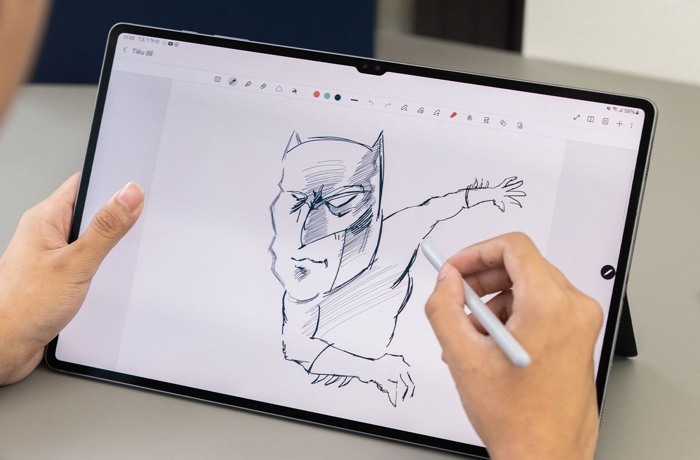 Trải nghiệm AI trên Galaxy Tab S10 series cũng được thăng hạng thông qua màn hình Dynamic AMOLED 2X sống động và sắc nét. Tần số quét màn hình đến 120Hz đảm bảo hình ảnh hiển thị mượt mà vượt bậc, nhất là khi làm việc, học tập và giải trí. Ngay cả khi làm việc ngoài trời, màn hình trang bị công nghệ chống phản chiếu Anti-reflection mới cũng mang lại trải nghiệm hình ảnh vô cùng rõ nét. Người dùng hoàn toàn có thể làm việc cùng Galaxy Tab S10 series khi di chuyển nhờ vào các ứng dụng chuyên nghiệp như Goodnotes 6, LumaFusion, Microsoft 365 Personal...