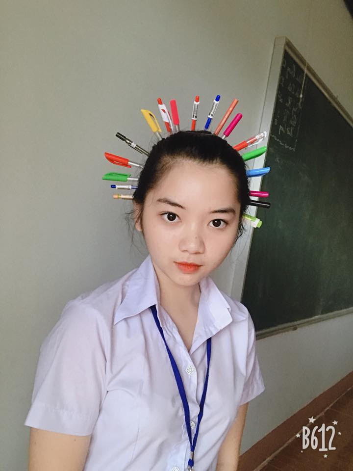 Nổi bật trong số đó chính là màn hóa trang thành “quý phi bút bi” của nữ sinh đến từ Bình Phước: Phan Thúy Hiền. Cô nàng sở hữu gương mặt xinh đẹp và vô cùng đáng yêu. Ngay sau khi đăng tải trên một group học đường, bức ảnh của "quý phi" Hiền đã nhanh chóng thu hút sự quan tâm của cộng đồng mạng. Cư dân mạng không quên dành "cơn mưa" lời khen cho cô nàng, ai cũng công nhận trông cô bạn thật xinh xắn và có thần thái của một “quý phi” xịn!