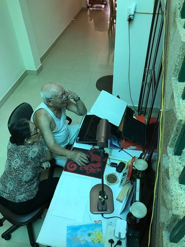Facebook Kiều Anh Nguyễn bình luận: "Còn đây là ông bà mình, các bạn ạ. Ông mình năm nay cũng 85-86 tuổi rồi, bà thì 80 tuổi. Ông bà vẫn xưng anh em, Ông còn biết dùng Internet để đọc báo nữa. Đây là lúc ông ngồi laptop đọc báo cho bà nghe. Thấy thương lắm".